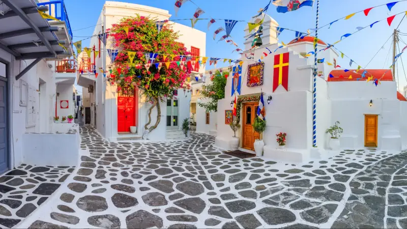 Sinds de jaren '60 is Mykonos niet alleen een populaire bestemming voor Grieken, maar ook voor Duitsers, Nederlanders, Belgen en Zweden. Een vakantie op Mykonos is een vakantie op het strand, maar ook lekker slenteren in de hoofdstad, feestvieren in één van de discotheken of het bezichtigen van de oude bezienswaardigheden. Niet voor niets wordt Mykonos vaak omschreven als het "Eiland van de Zon".
